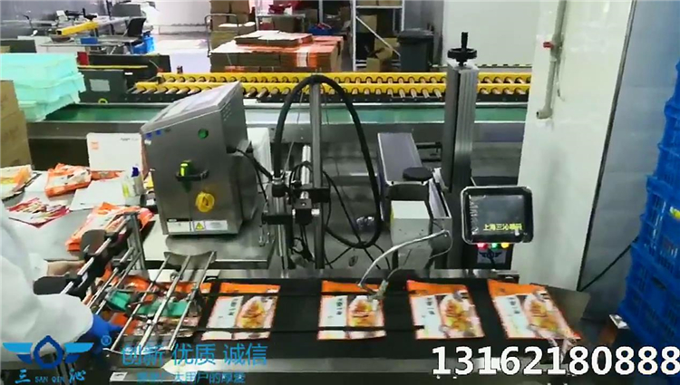 激光SQ3200-CO2高速飛行+分頁,激光噴碼雙盈食品外包裝袋噴碼案例:
