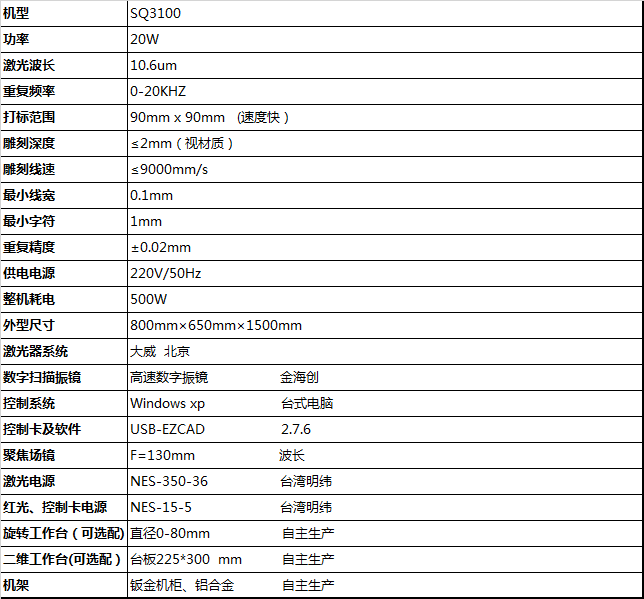 二、SQ3100(CO2)激光噴碼機技術參數(shù)