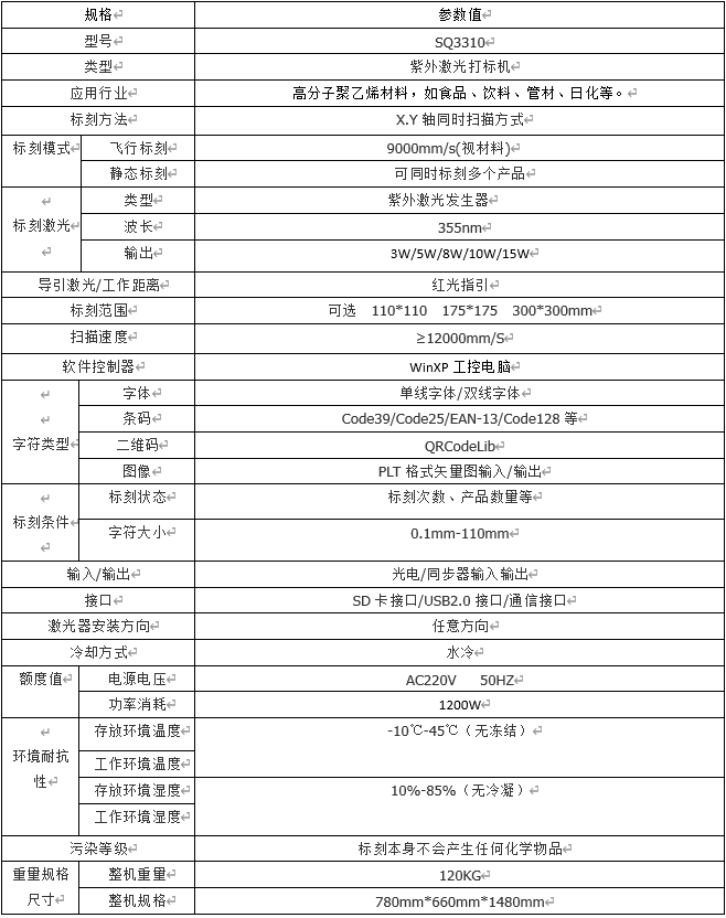 二、SQ3310紫外激光打標(biāo)機(jī)技術(shù)參數(shù)